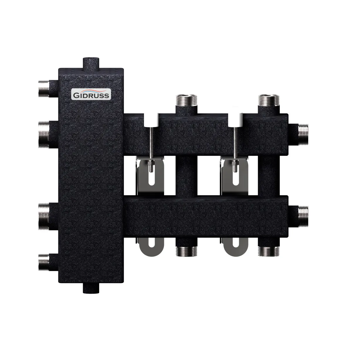 Балансировочный коллектор BM-100-3DU (коллектор с гидрострелкой) объединяет в себе функционал гидравлического разделителя и распределительного коллектора на 3 контура, 1 из которых направлен вверх, 1 вниз и 1 в сторону.
