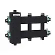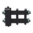 Коллектор на 5 контуров со встроенной гидрострелкой удобен для монтажа в небольших котельных в том числе с настенными котлами. Обвязка производится "звездочкой", например если котел подключается слева, то насосная группа контура радиаторов направлена вверх, группа бойлера вправо, контур теплых полов вниз.