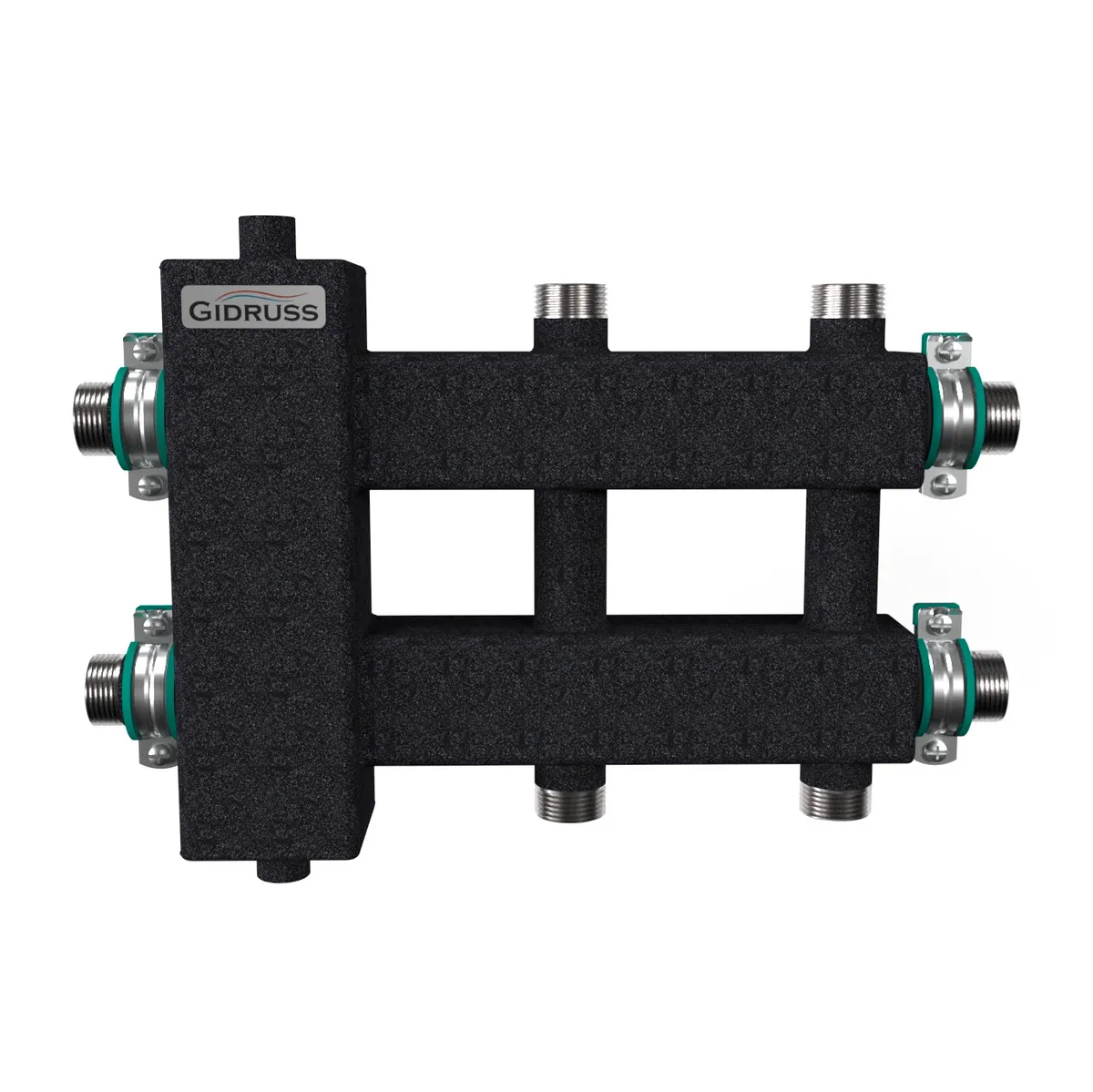 Коллектор с гидрострелкой (балансировочный коллектор) Gidruss BME-60-3DU объединяет в себе функционал гидравлического разделителя для тепло-генераторов мощностью до 60 кВт, а так же распределительный коллектор на 3 контура G 1'', 1 из которых направлен вниз, 1 вверх и 1 в сторону.