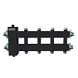 Коллектор на 5 контуров со встроенной гидрострелкой удобен для монтажа в небольших котельных в том числе с настенными котлами. Обвязка производится "звездочкой", например если котел подключается слева, то насосная группа контура радиаторов направлена вверх, группа бойлера вправо, контур теплых полов вниз.