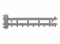 Балансировочный коллектор из нержавеющей стали BMSS-100-5D (нержавеющая гидрострелка с коллектором) объединяет в себе функционал гидравлического разделителя и распределительного коллектора на 5 контуров G 1'', 4 из которых направлен вниз или вверх и 1 в сторону.