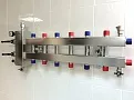 Балансировочный коллектор из нержавеющей стали BMSS-100-7DU (нержавеющая гидрострелка с коллектором) объединяет в себе функционал гидравлического разделителя и распределительного коллектора на 7 контуров G 1'', 3 из которых направлены вверх, 3 вниз и 1 в сторону.