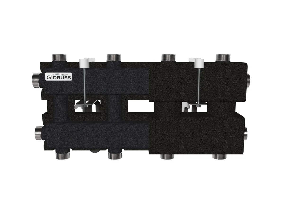 Модульный коллектор отопления с термоизоляцией MK-60-5DU.EPP предназначен для распределения и сбора теплоносителя по 5-ти контурам-потребителям G 1″, где подающая и обратная линия каждого контура расположены в одной плоскости с осевым расстоянием 125 мм.