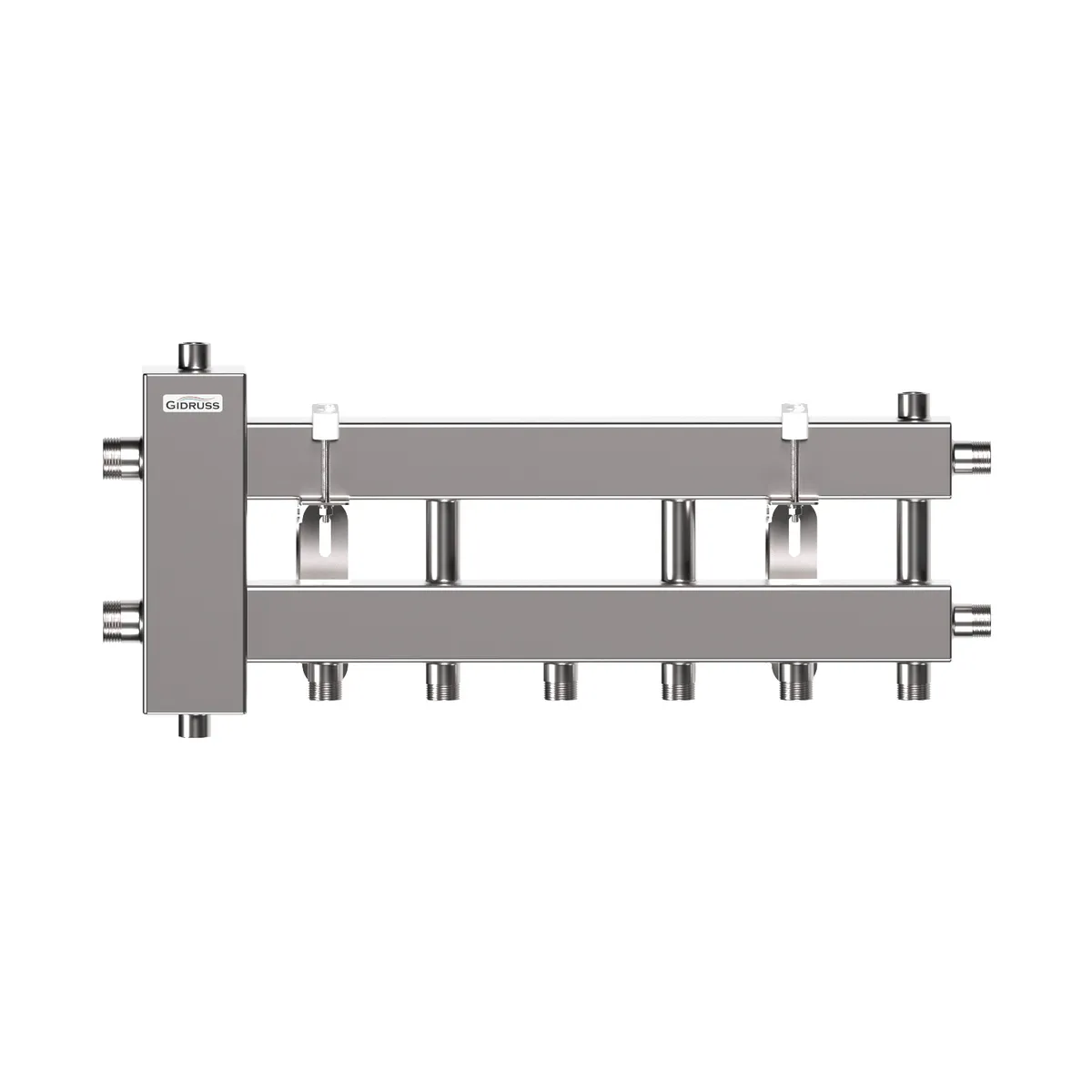 Балансировочный коллектор компактного исполнения BMKSS-60-4D из нержавеющей стали объединяет в себе функционал гидравлического разделителя и распределительного коллектора на 4 контура G ¾'', 3 из которых вверх или вниз и 1 в сторону. Данный коллектор удобен для монтажа в небольших котельных в основном с настенными котлами.