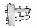Нержавеющий балансировочный коллектор BMSS-100-3DU представляет из себя гидрострелку до 100 кВт с распределительным коллектором на 3 контура, 1 из которых направлен вниз, 1 вверх и 1 в сторону.Боковой контур повышенной производительности G 1¼″ позволяет подключать мощные потребители, такие как теплообменники для подогрева бассейнов и вентиляции, а так же расширять кол-во потребителей при расширении хозяйства путем транзитного присоединения дополнительной секции модульных коллекторов MKSS-100.