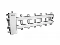 Нержавеющий балансировочный коллектор BMSS-100-7DU представляет из себя гидрострелку до 100 кВт с распределительным коллектором на 7 контуров, 3 из которых направлены вниз, 3 вверх и 1 в сторону.Боковой контур повышенной производительности G 1¼″ позволяет подключать мощные потребители, такие как теплообменники для подогрева бассейнов и вентиляции, а так же расширять кол-во потребителей при расширении хозяйства путем транзитного присоединения дополнительной секции модульных коллекторов MKSS-100.