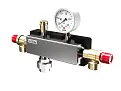 Группа безопасности с корпусом из нержавеющей стали AISI 304 необходима для защиты контура отопления от давления свыше 3 бар, удаление воздуха из теплоносителя и индикации рабочего давления.Надежность срабатывания обеспечивается двумя предохранительными клапанами.Устанавливается на подающей линии котла или контура отопления после теплообменника до 350 кВт.