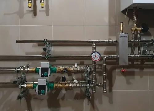 Основные подключения выполнены из нержавеющих труб полностью совместимостимыми по размерам со всеми пресс-системами: Valtec, Kan, Viega, Geberit.