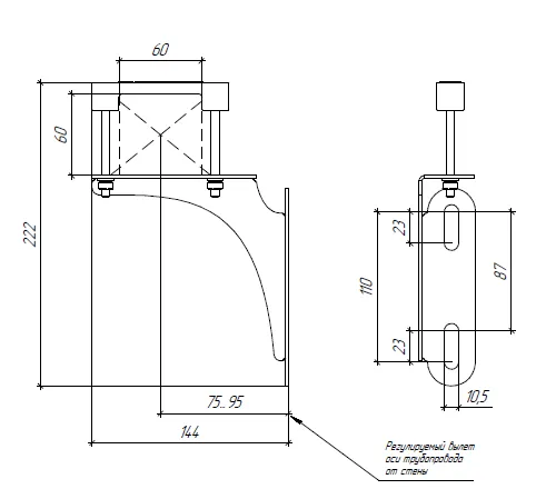 Усовершенствованная модель - Универсальная монтажная система K.UMS.DN25-125 (межосевое 125 мм, вылет от стены 75-105 мм, цвет черный муар)