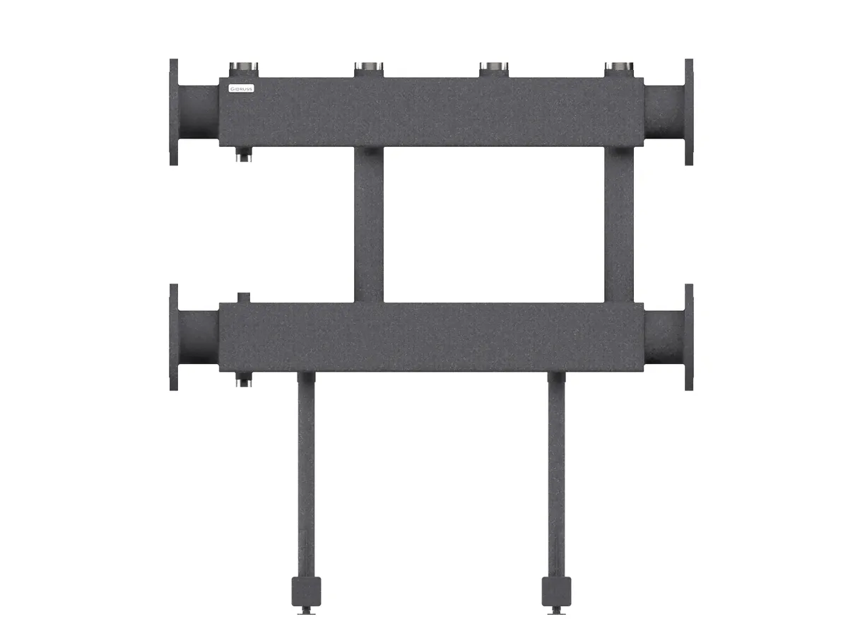 Модульный коллектор MK-1000-2x50 предназначен для распределения теплоносителя по контурам или его сбора в каскад для вывода на гидравлический разделитель GR-1000-100 .