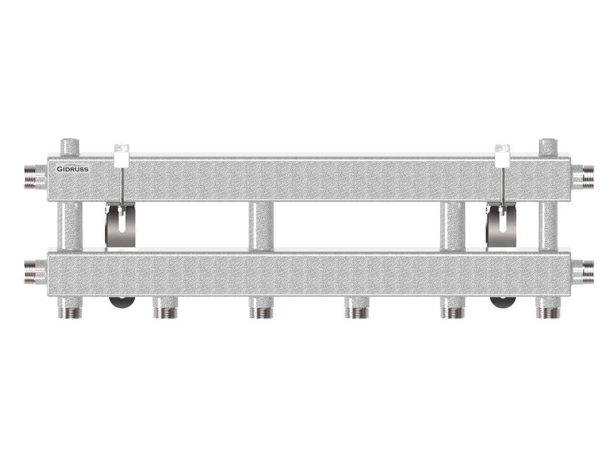 Модульные коллекторы Gidruss MK-60-4D предназначен для распределения теплоносителя по контурам или его сбора в каскад для вывода на гидравлический разделитель, где подающая и обратная линия каждого контура расположены параллельно друг с другом на расстоянии 125 мм. Присодениенительный размер контуров G 1″.