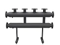 Модульный коллектор отопления MK-600-2x65 используется в автономных котельных и ИТП с независимым подключением для распределения теплоносителя из магистрали DN80 (фл. 1-80-10) на 2 потребителя DN65 (фл. 1-65-10) .