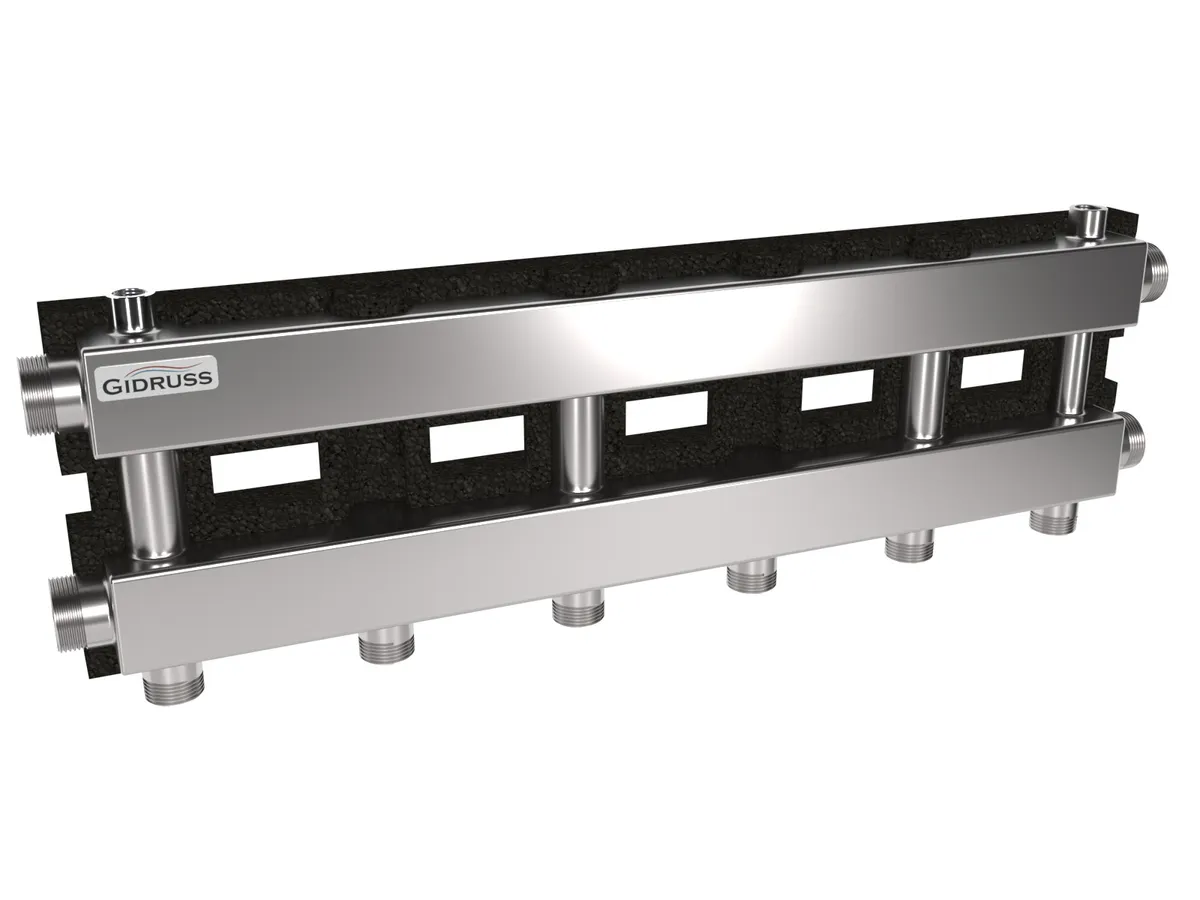 Модульный коллектор отопления нержавеющий с термоизоляцией MKSS-100-3.EPP предназначен для распределения и сбора теплоносителя по 3-м контурам-потребителям G 1″ и одному G ¼″, где подающая и обратная линия каждого контура расположены в одной плоскости с осевым расстоянием 125 мм.