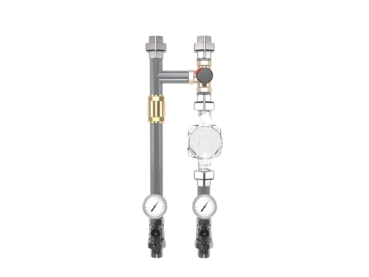 Насосная группа NG-25C(E) с ротационным смесителем ESBE VRG 131 предназначена для обвязки контура потребителя с регулируемой температурой (теплые полы, радиаторы)