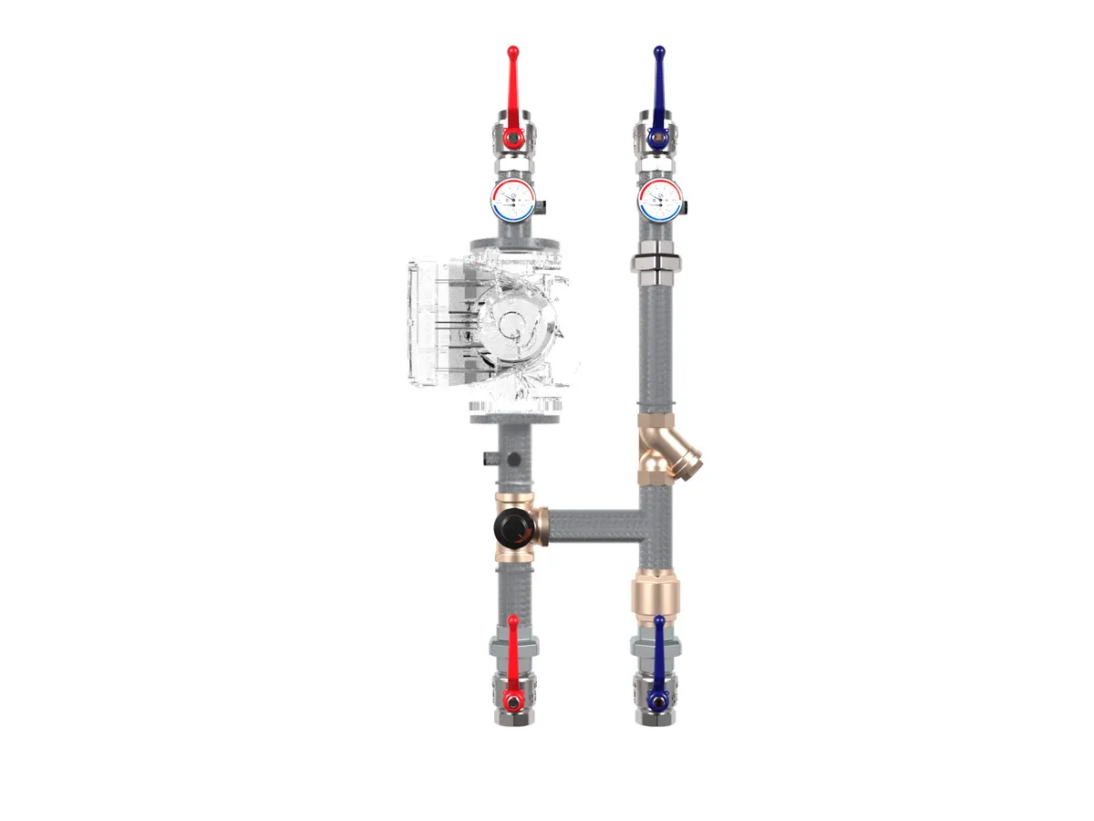 Насосная группа из конструкционной стали NG-50C с ротационным смесителем ESBE VRG 131 предназначена для обвязки контура потребителя с регулируемой температурой (теплые полы, радиаторы).