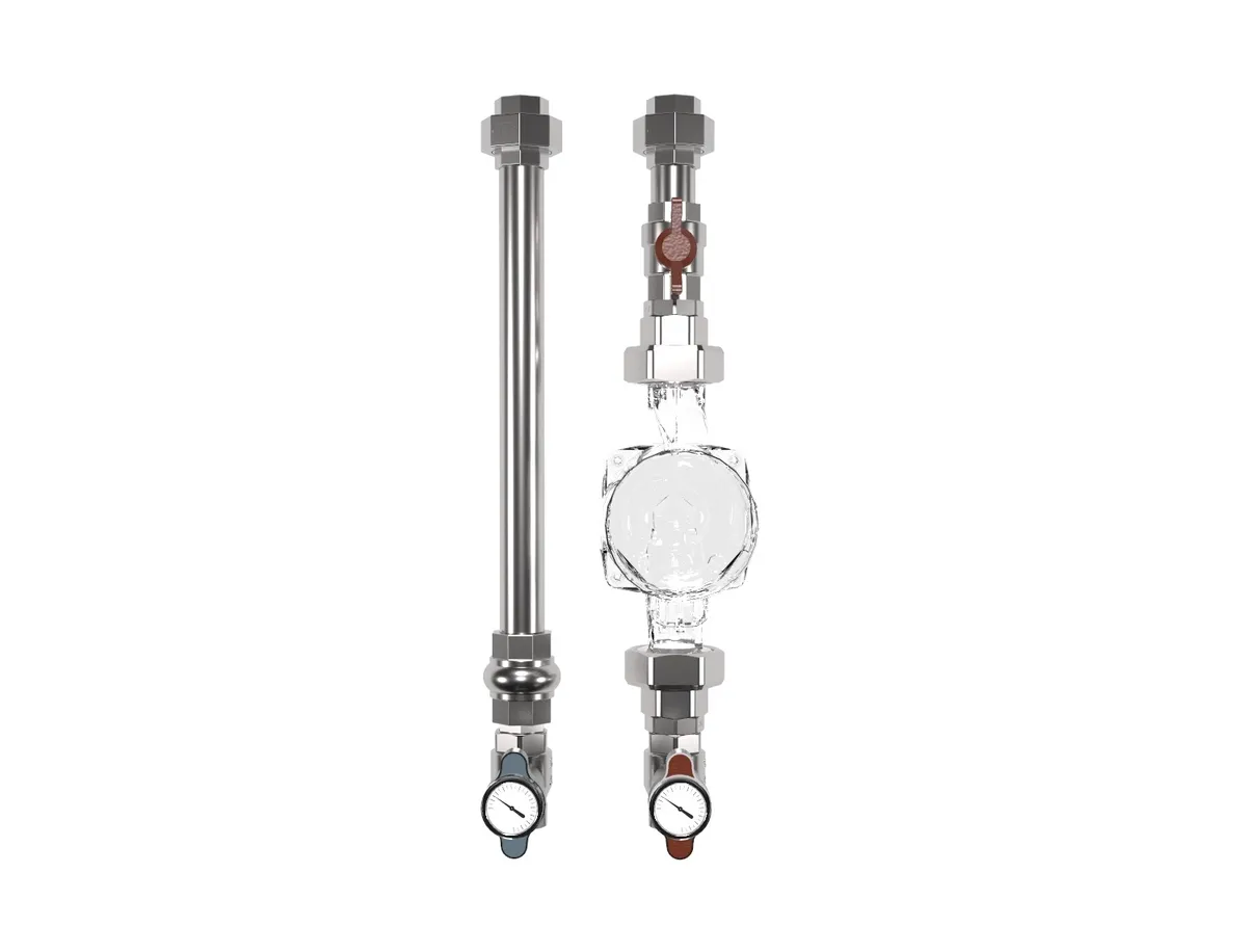 Насосная группа из нержавеющей стали NGSS-20 (¾″) предназначена для распределения теплоносителя на высокотемпературные контуры-потребители (радиаторы, бойлер ГВС, теплообменник бассейна, вентиляции и т.д.).