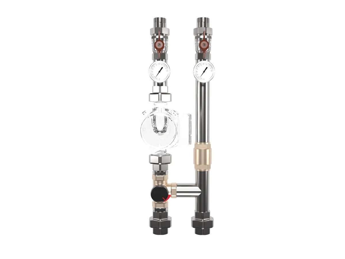 Насосная группа из нержавеющей стали NGSS-32C с ротационным смесителем ESBE VRG 131 предназначена для обвязки контура потребителя с регулируемой температурой (теплые полы, радиаторы).