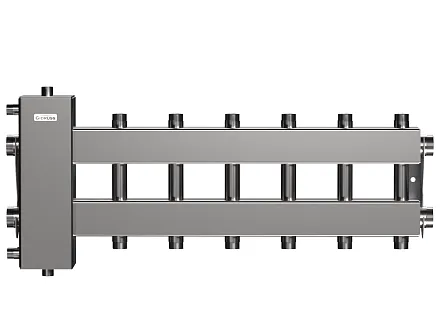 | Системы отопления свыше 150 кВт на 6-7 контуров | Выбирайте отдельно гидравлический разделитель от G 2" до Ду-300 и несколько последовательно соединенных модульных коллекторов отопления, соответствующего размера. |