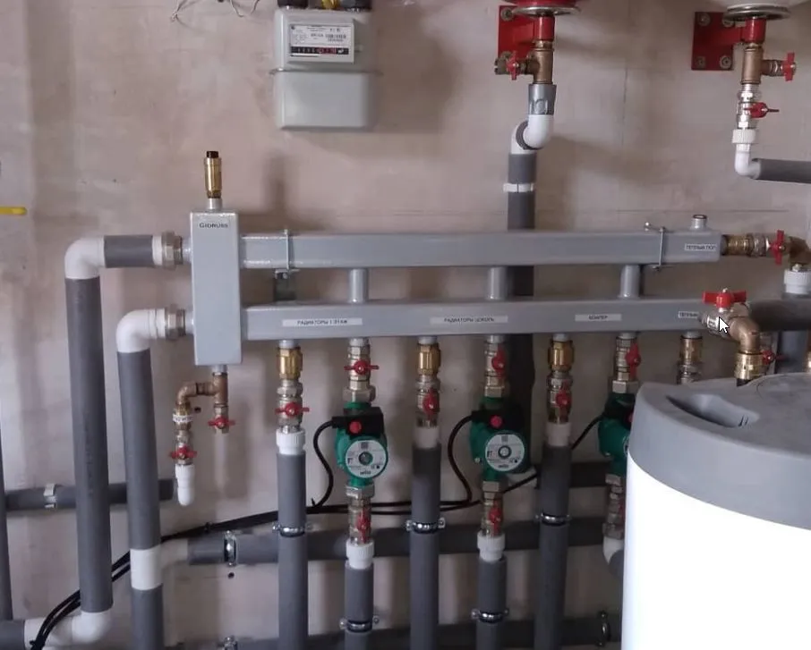 Система отопления склада на базе напольного котла BAXI SLIM. Подробное описание объекта см. на официальном INSTAGRAM @otoplenieufarb