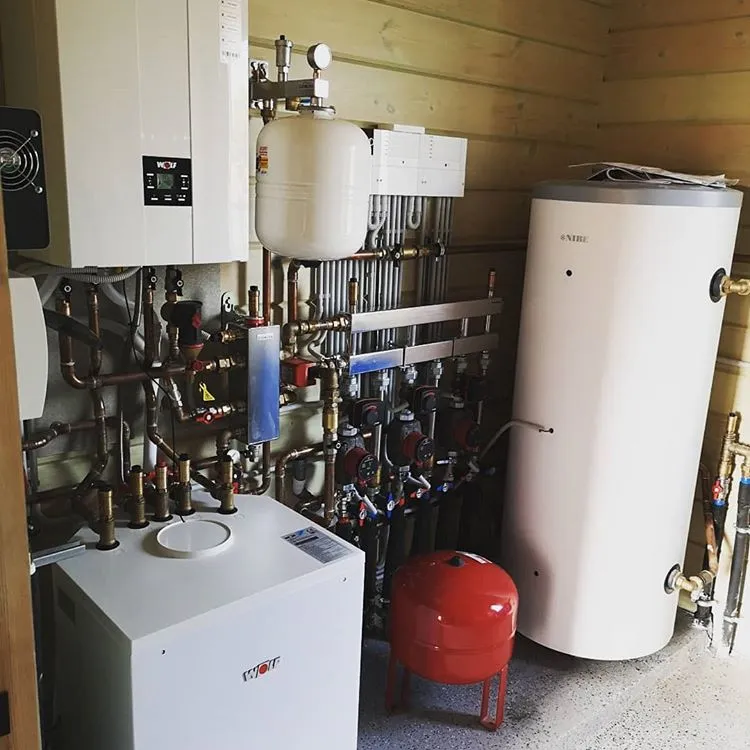 Монтаж системы отопления произведен на базе газового котла Wolf FGB-28.