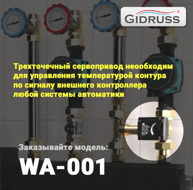 Если Вы хотите реализовать удаленное управление температурой контура или автоматическое регулирование по отдельной температурной кривой - можно установить трехточечный сервопривод WA.